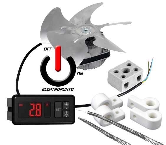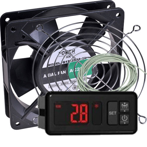 VENTILADOR: La mayoría de las incubadoras de aire forzado llevan este accesorio, al igual que los anteriores comentados, el ventilador puede ser muy variable, disponibles diferentes tipos, formatos, prestaciones, de mas o menos caudal, de rodamiento de bolas, de fricción, de Aspas, Tangenciales, grandes pequeños, etc…